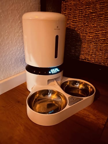 Eigentlich für eine Reise gekauft, nutzen wir den Futterautomaten nun regelmäßig. Die Portionen kommen zuverlässig, die App ist selbsterklärend: Zeiten und Mengen lassen sich flexibel festlegen. Das Gerät kann mit Batterien oder per Kabel laufen; wir haben uns für den Kabelbetrieb entschieden. Die Schale kann man zum Reinigen herausnehmen. Besonders gefällt uns das Design – es wirkt modern und passt in die Wohnung. Unsere Katzen sprinten manchmal schon los, sobald sie das Geräusch hören 😊.